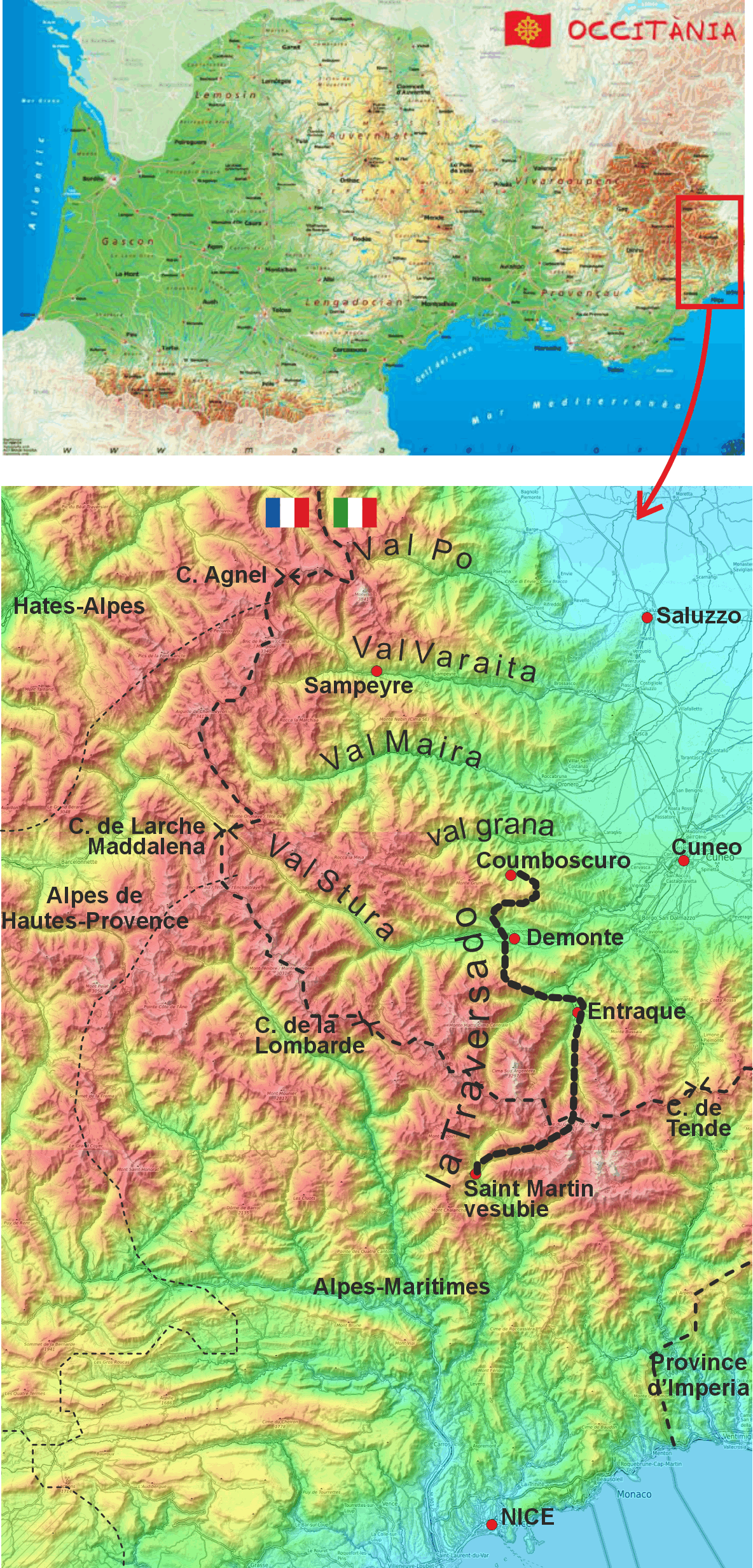 Carte de l'ancienne occitanie culturelle et linguistique (1206)
